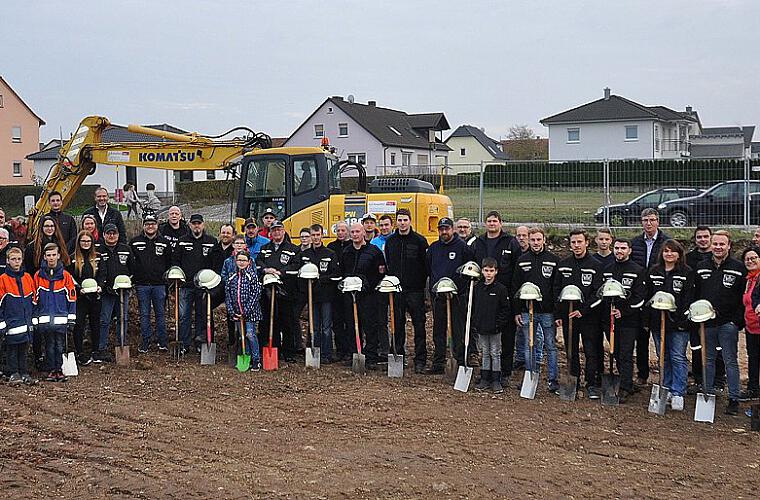Der offizielle erste Spatenstich war für die Wehrleute selbst bestimmt. So traf man sich mit den Gemeindevertretern und dem Architekten Alexander Albert sowie dessen Mitarbeiterinnen an der Baustelle.