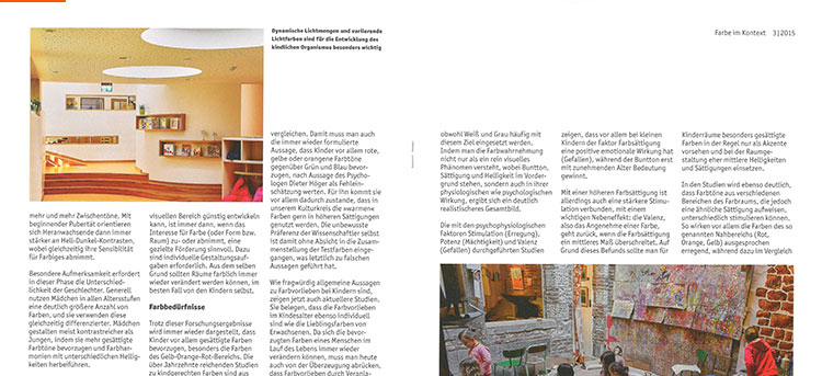 Als gelungenes Beispiel für "Räume, die Kindern gut tun" wählte Autor Roland Aull den von Alexander Albert Architekten entworfenen und umgesetzten Kindergarten in Niederlauer.