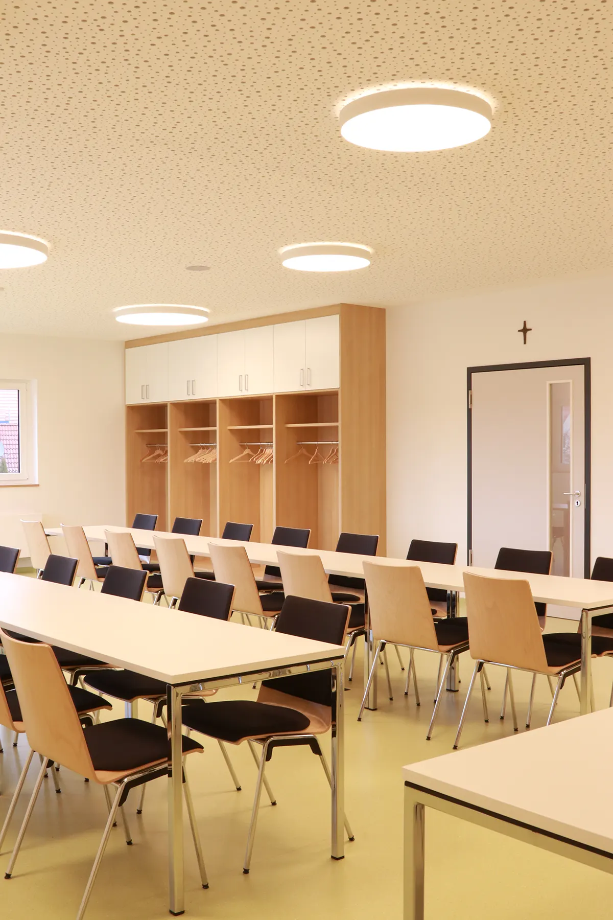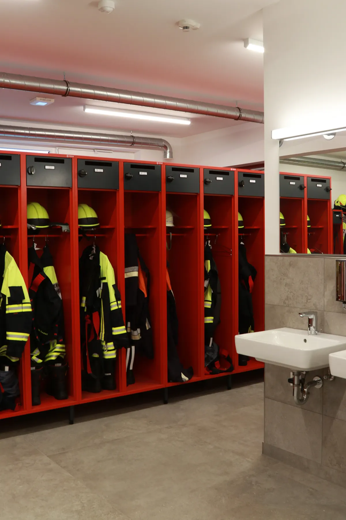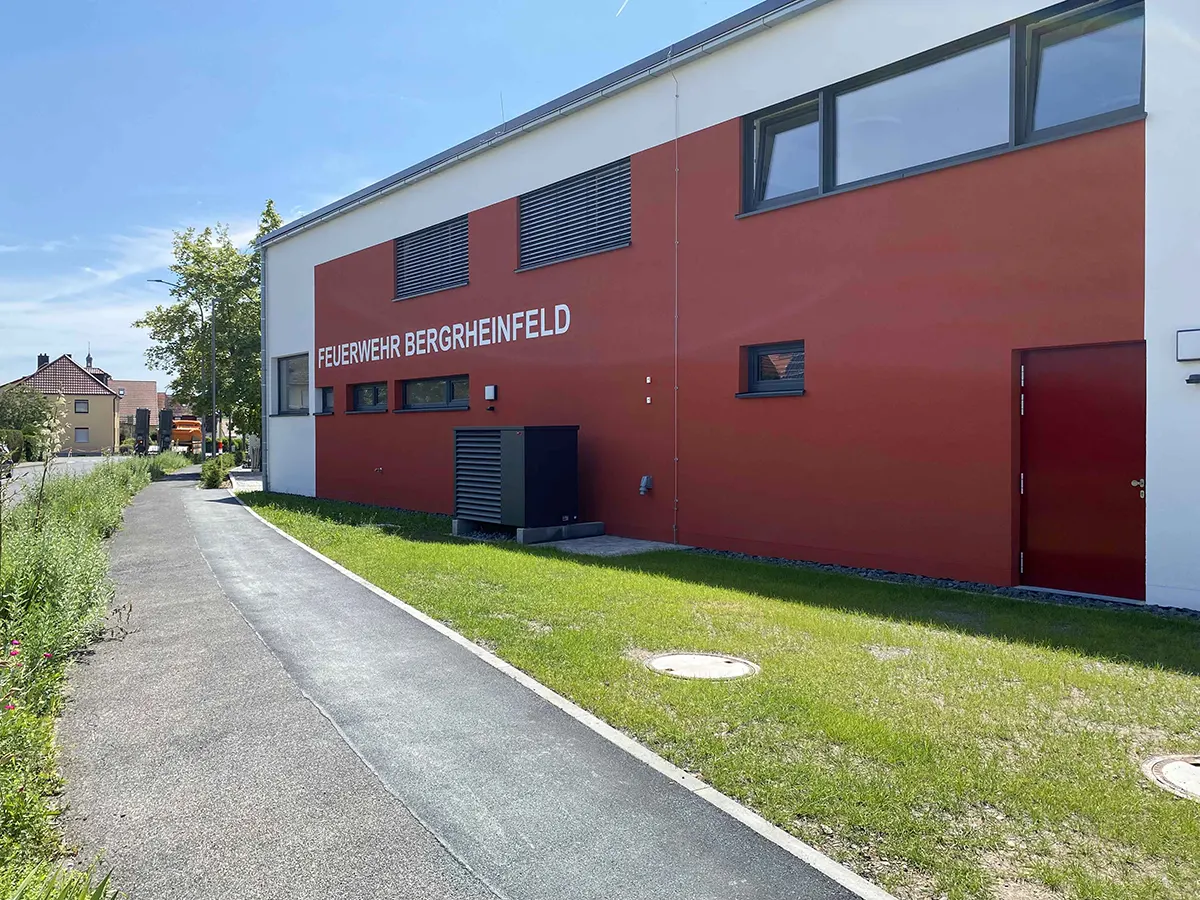 Für Gemeinde Bergrheinfeld realisierten wir den Ersatzneubau eines Feuerwehrgerätehauses mit Umkleide-, Sanitär-, Schulungs-, Pausen-, und Lagerräumen sowie angrenzender Fahrzeughalle mit nun sechs anstatt vier Stellplätzen. Daneben sah das Raumkonzept auch Flächen für die Unterbringung der Kinder- und Jugendfeuerwehr im Obergeschoss vor. Durch die klare Trennung des Sozial- und Einsatzbereiches sowie der kurzen Wege zueinander, können die Abläufe im Einsatz effizient und sicher gewährleistet werden.